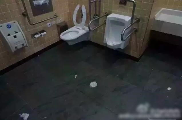 另外也有人拍下照片,可見有廁所被遊客蹂躪完畢後,滿地水漬和骯髒廁紙。